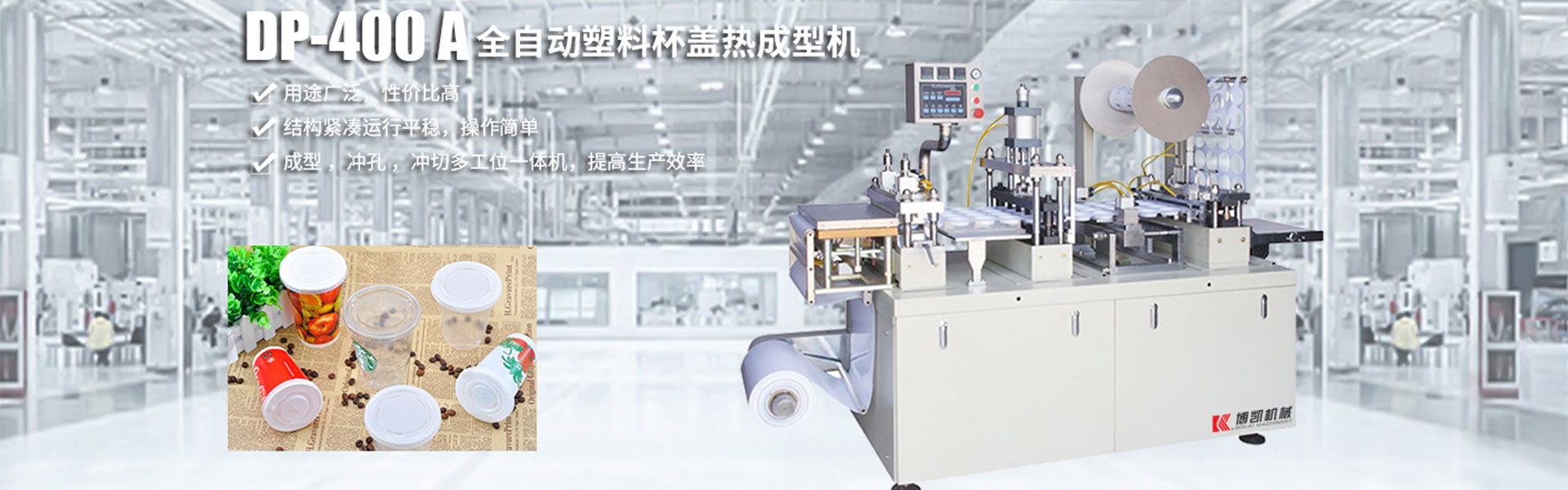 瑞安市博凱機械有限公司位于祖國的東海之濱,享有中國包裝機械城之譽的美麗海濱城市------瑞安。瑞安是中國著名的包裝機械、制藥機械生產(chǎn)基地。瑞安市博凱機械有限公司主營:一次性杯蓋機,杯蓋成型機,塑料杯蓋成型機,全自動塑料成型機;借助于其得天獨厚的資源優(yōu)勢,結(jié)合市場需求以及多年生產(chǎn)鋁塑包裝機技術(shù),吸取吸塑機的優(yōu)點創(chuàng)新研發(fā)的新型產(chǎn)品Dpp400F吹塑成型機!該機實現(xiàn)了放卷,成型,沖孔,沖裁,出料,收卷···